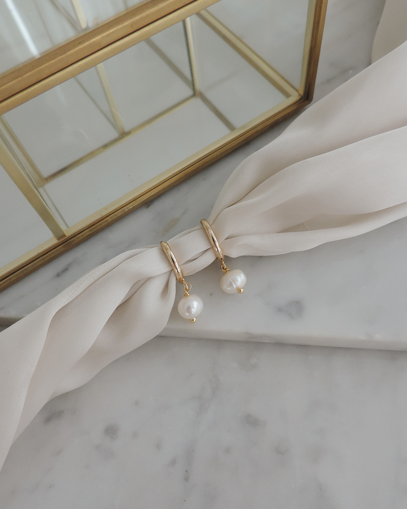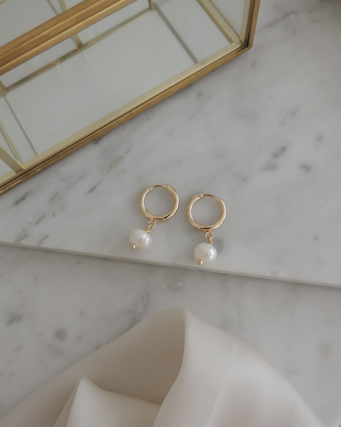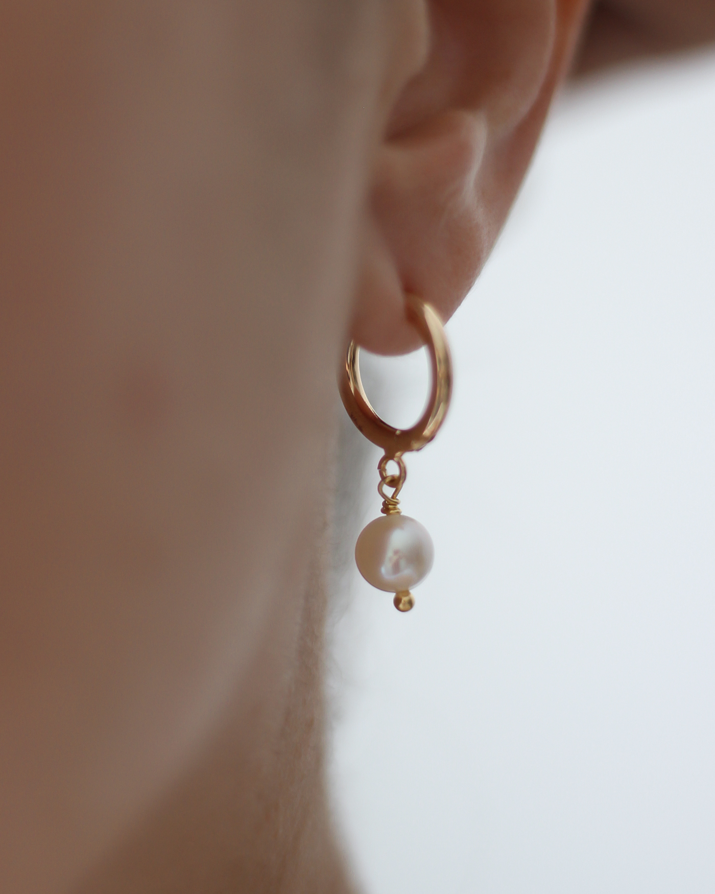 Aros (el par), argollitas básicas laminadas en oro de 14mm aprox. con dije perla de río natural de 7mm/8mm. (Las perlas pueden variar su brillo y forma ya que son perlas naturales).