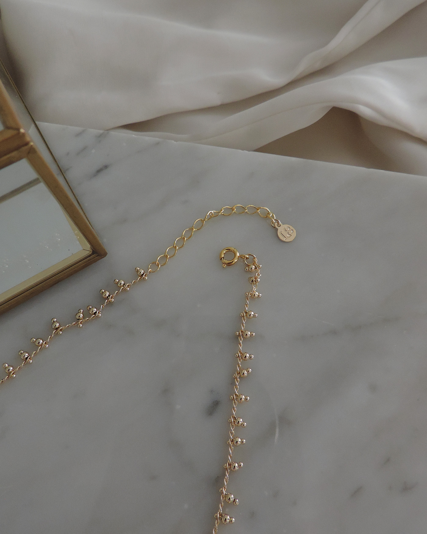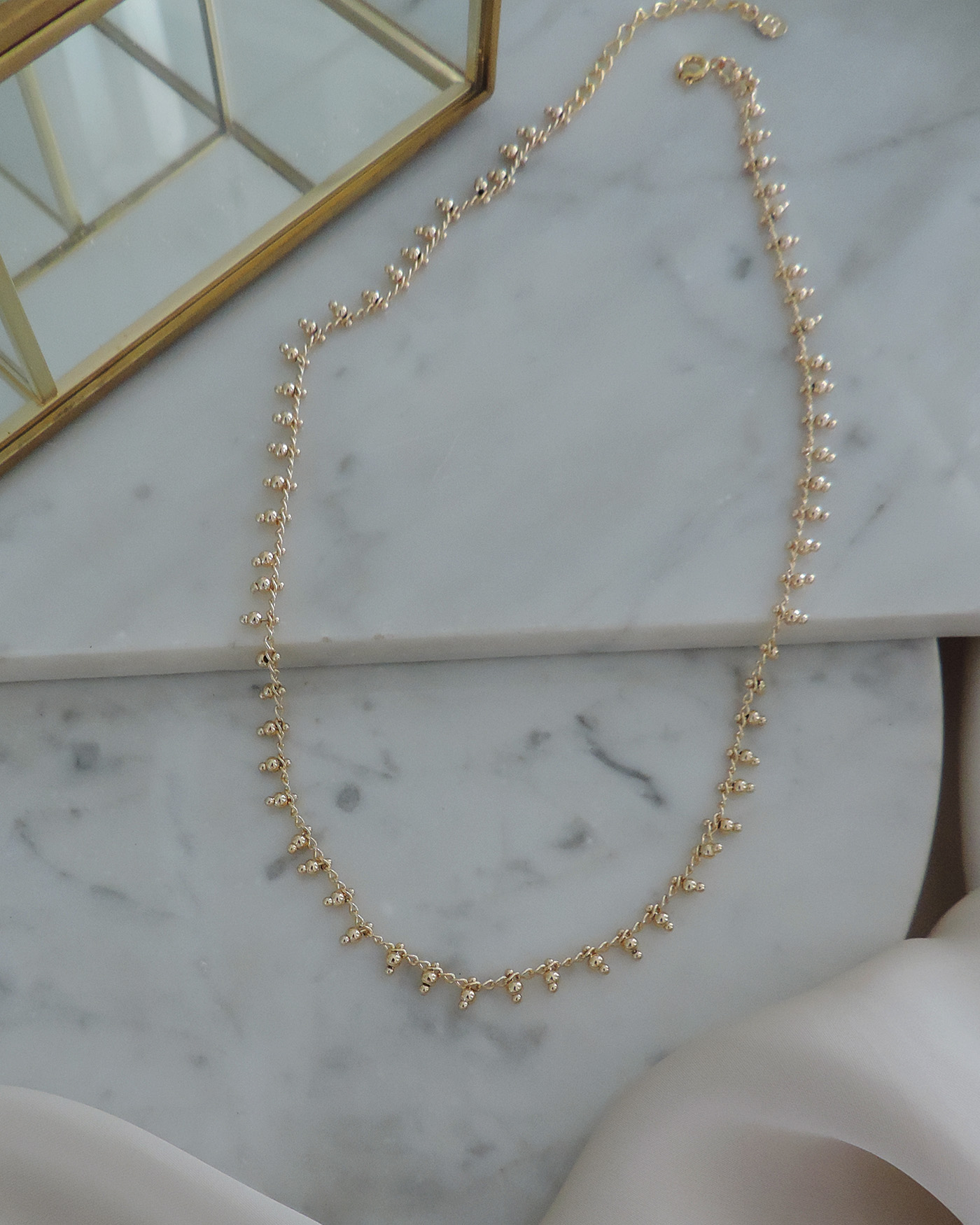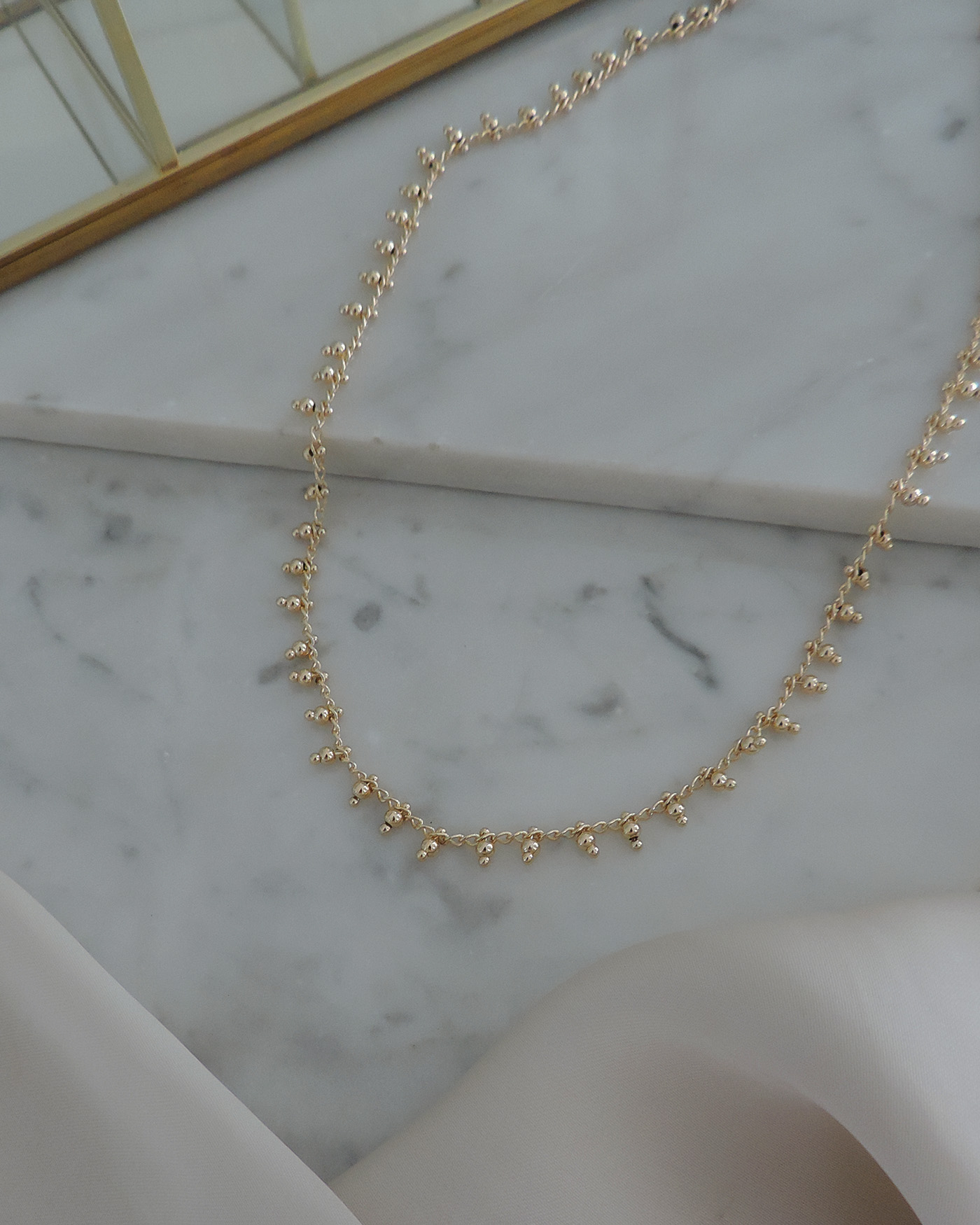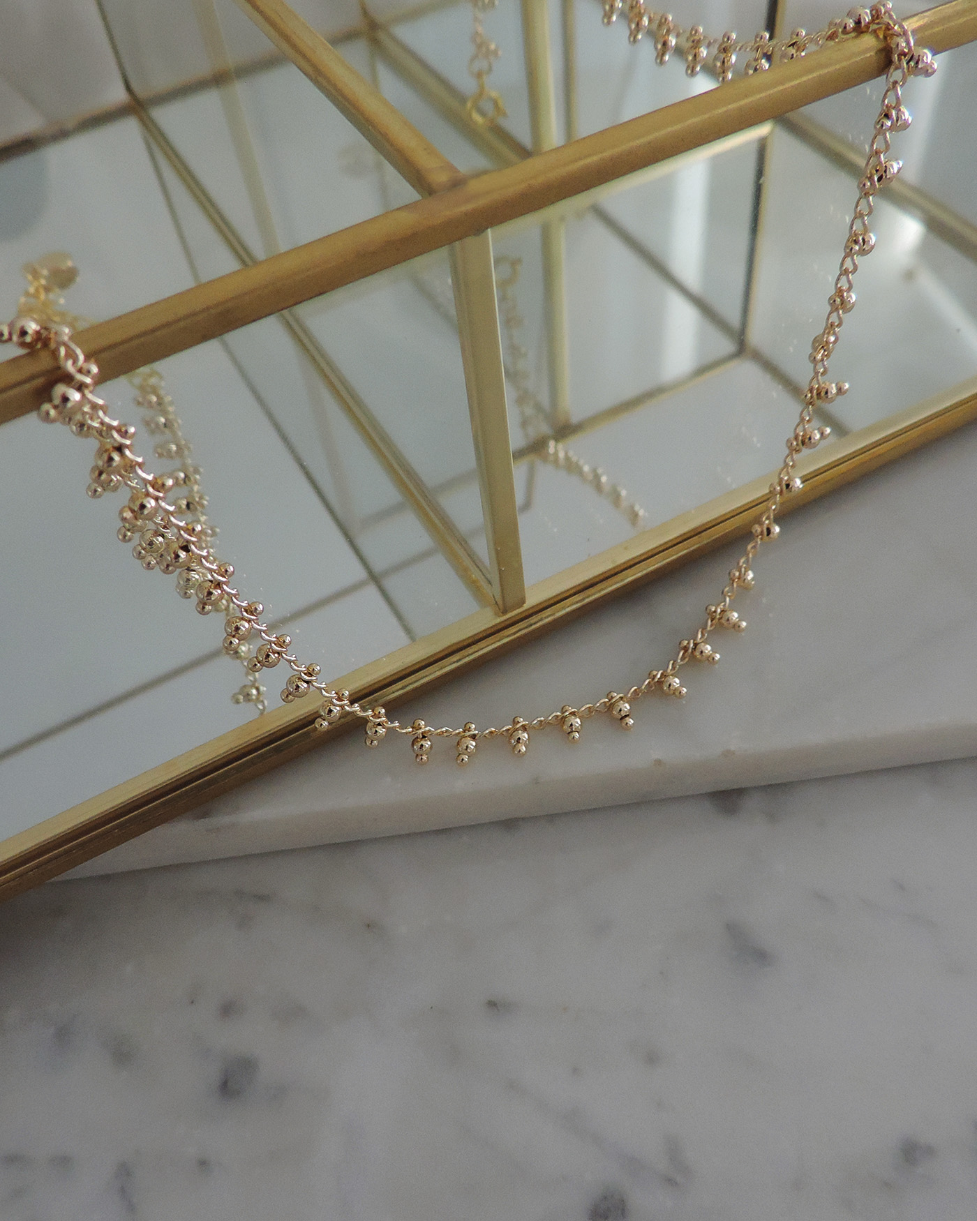 Collar gargantilla realizado con cadena básica con balines mini. Todo en laminado en oro hipoalergénico.