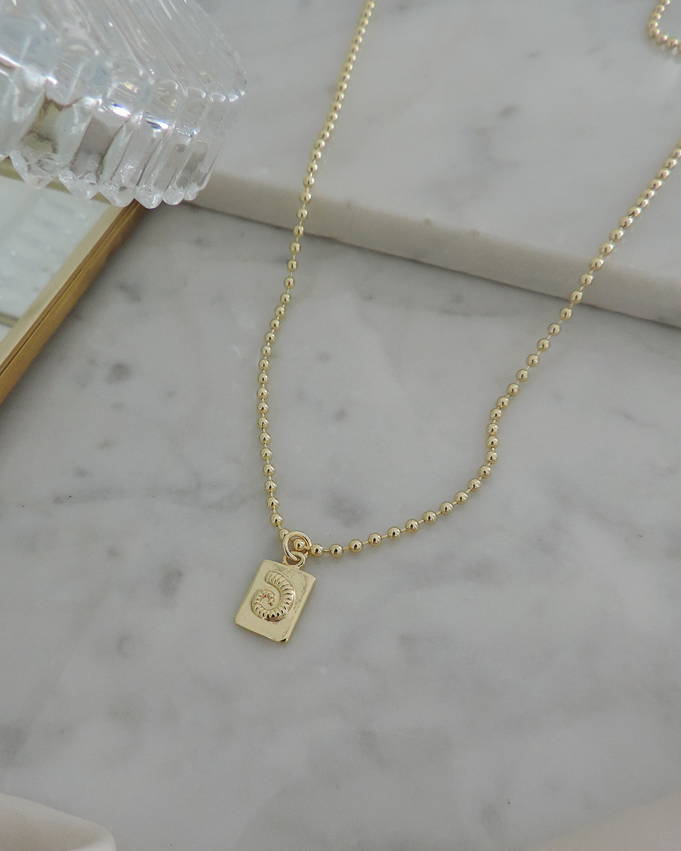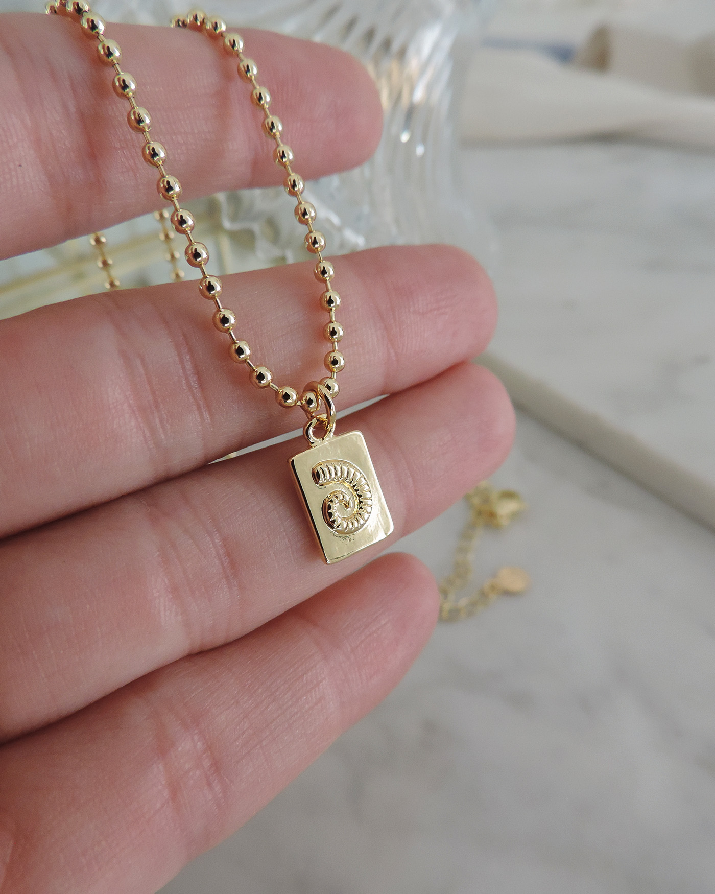 Collar realizado con cadena militar de 2mm + dije placa nautilus de 13mm. Todo en laminado en oro hipoalergénico.