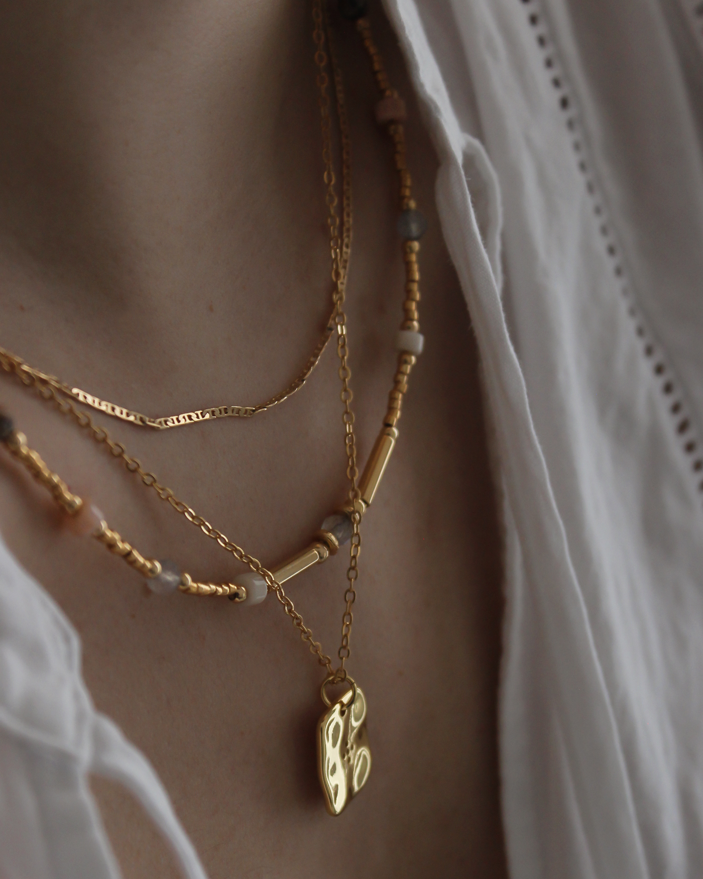Ideal para usar sola o con otras cadenitas o gargantillas laminadas en oro .
