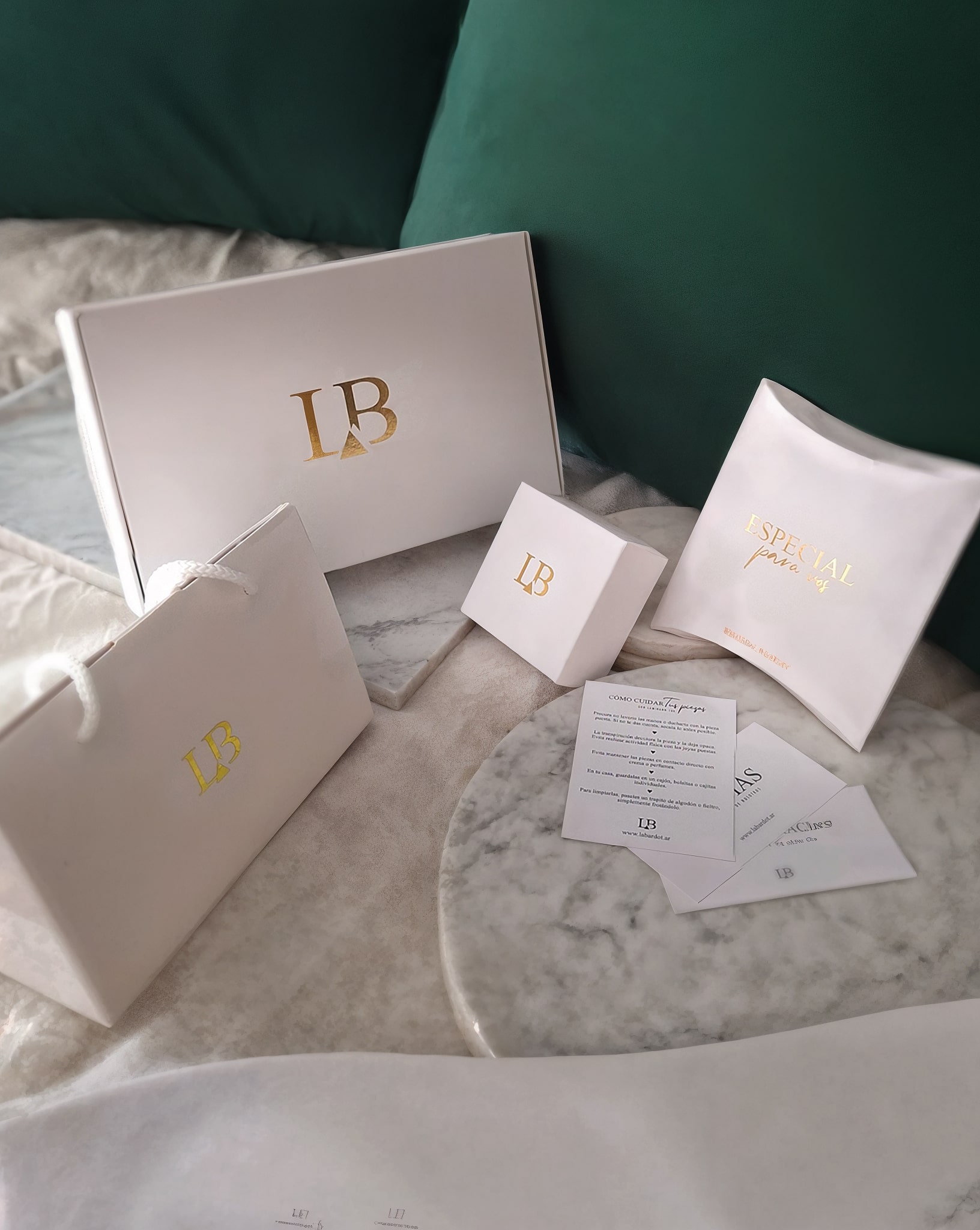 • Caja exterior de la marca con logos en Stamping Dorado.